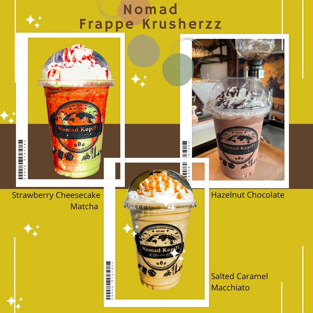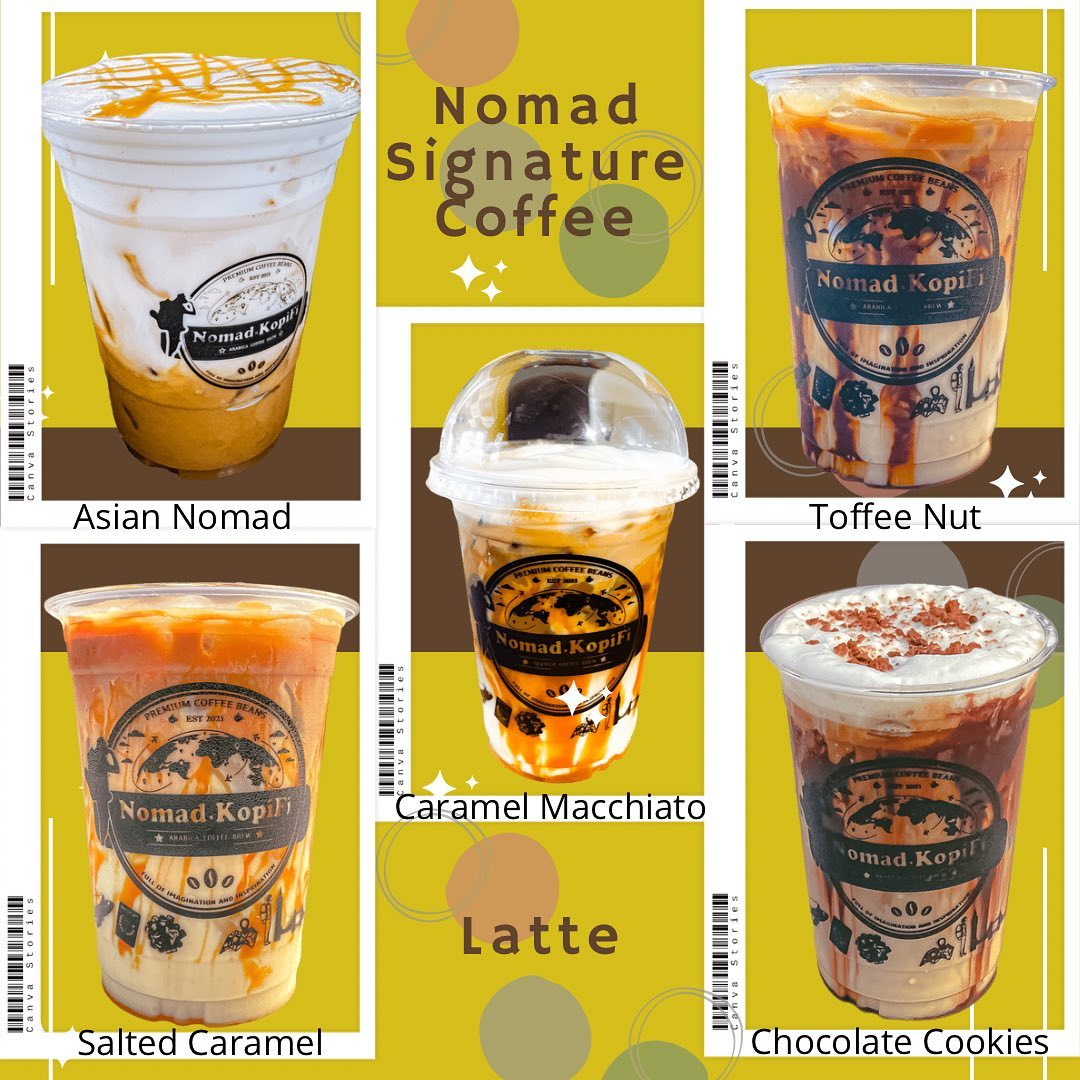 Antara kopi signature kafe ini adalah Asian Nomad, Salted Caramel, Caramel Macchiato, Toffee Nut dan Chocolate Cookies. Terdapat juga minuman jenis frappe yang popular seperti Strawberry Cheesecake Matcha, Hazelnut Chocolate dan Salted Caramel Macchiato.